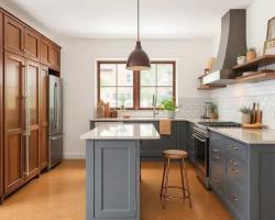 главное внимание уделить, прежде всего, удобству кухни. Эргономика кухни вместе с коммуникациями занимает первейшее место в ремонте маленькой или большой кухни . Главное это соблюсти рабочий треугольник. Мойка в центре, по краям плита и холодильник разделенные рабочей поверхностью. Модное размещение холодильника в коридоре или выделение плиты, мойки в остров, без просчета передвижений повара отнимут немало сил у хозяйки или хозяина на беготню от холодильника к мойке, от мойки к плите.